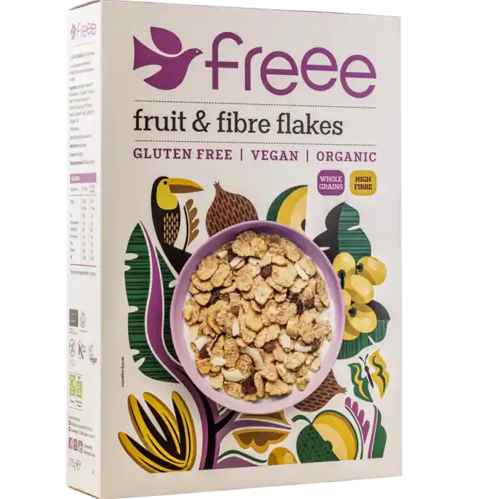 Ekologiska frukt- och fiberflingor från Freee Foods, 375 g.