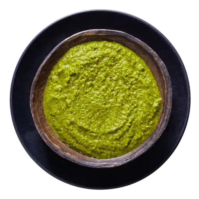Färdiglagad färsk och balanserad gröt gjord på spenat, broccoli, äpple, vitkål, avokado, ingefära, citron, cashewnötter smaksatt med mynta och persilja samt en touch av gurkmeja och matcha.
