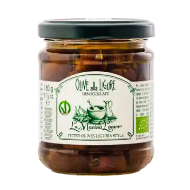 180 g | Italienska kärnfria svarta oliver i olivolja