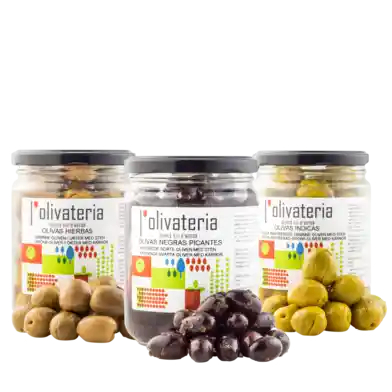 3 burkar á 435 g. | Tre olika sorters spanska oliver