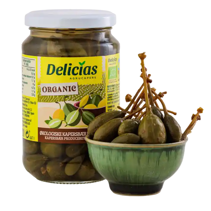 Våra kaprisbär med stjälk är fulla av salt och syrlig smak. Använd dem för att lyfta sallader, såser och grytor, eller servera dem till tapas – en liten grön touch som ger rätterna extra liv och karaktär.