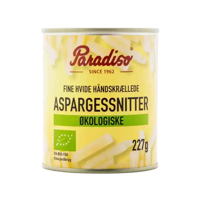 Kokt ekologisk snittad vit sparris från Paradiso, 227 g.