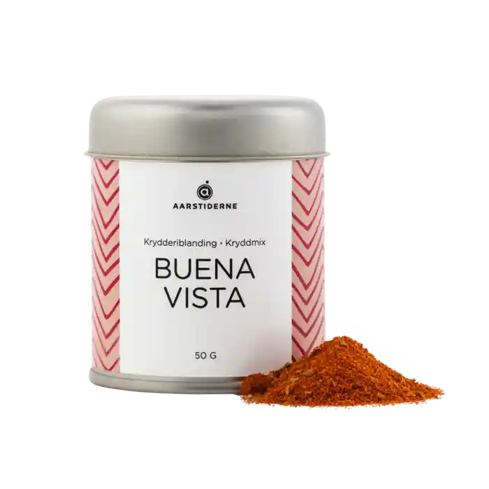 Buena vista är inspirerad av tex mex-köket. Kryddmixen består av bl.a. spiskummin och oregano, kryddor som vi ofta förknippar med Mellanöstern och Italien. Den innehåller också chili och rökt paprika.