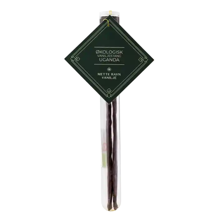 Mette Ravn får vaniljstängerna från Clemens Fehr och Gourmet Gardens i Uganda. Här odlas vaniljen med respekt för naturen – utan kemikalier och med stor omsorg för varje enskild planta. Endast de mognaste bönorna skördas, och en varsam bearbetning säkerställer den djupa, komplexa smaken.