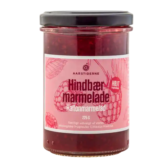 Härlig hallonmarmelad med den perfekta balansen mellan sötma och syrlighet - sötad med rörsocker. God till en skiva bröd, till pannkakor eller till desserter.