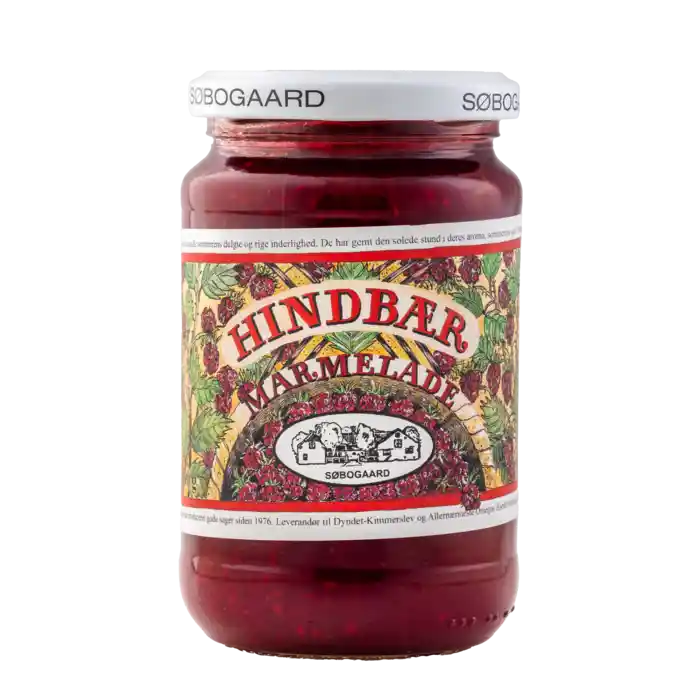 Ekologisk hallonmarmelad från Søbogaard, 390 g.