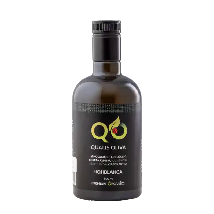 Kallpressad olivolja på den traditionella andalusiska olivsorten Hojiblanca. Hojiblanca smakar moget med en lätt pikant eftersmak och en aroma av nyklippt gräs.
