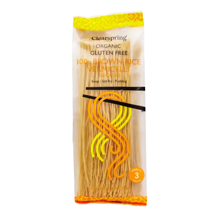 Ekologiska bruna Vermicelli risnudlar från Clearspring, 180 g.