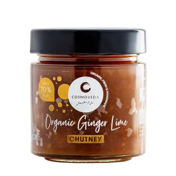 En chutney gjord på ananas efter Cosmovedas klassiska recept med utsökta helt ekologiska ingredienser.