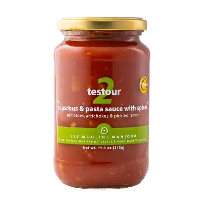 Testour-såsen är god att röra ner i couscous- eller pastarätter. Värm den före användning och späd ev. ut den med lite vatten.