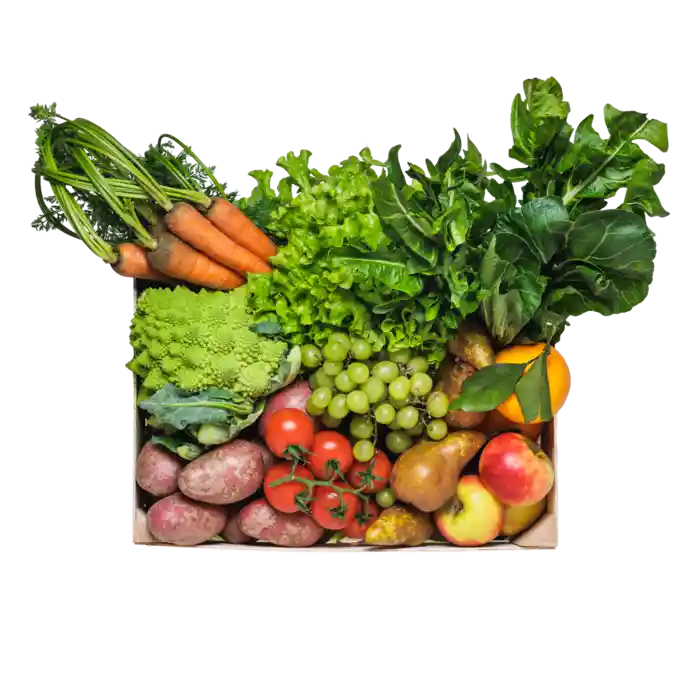 Låda med ekologisk frukt och grönt, minst 6 kg.