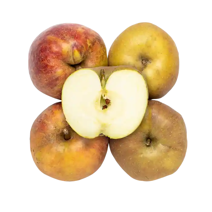 Ett stort ätäpple med en syrlig aromatisk smak och lite sötma. Skalet är tjockt och fruktköttet är gulaktigt.