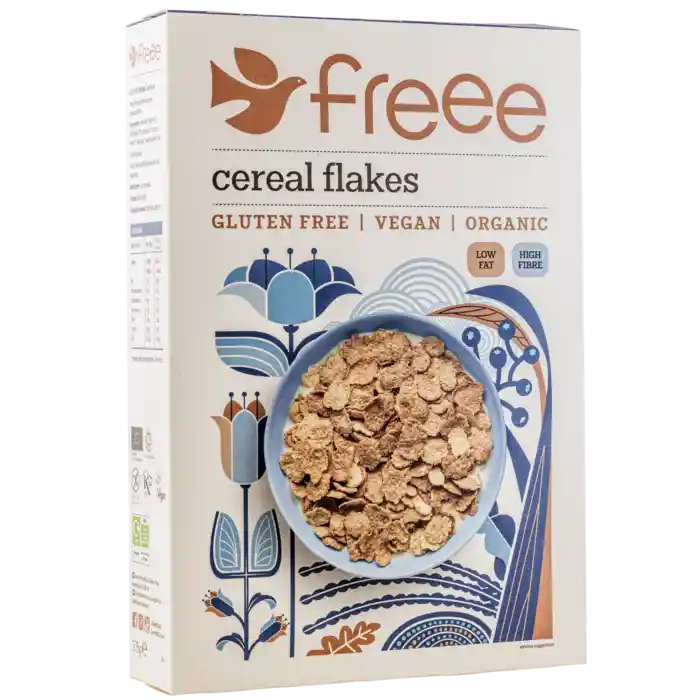 Krispiga glutenfria flingor gjorda av en blandning av ris och bovete. Frukostflingorna är veganska och naturligt fria från gluten, ägg, mjölk, nötter och vete.