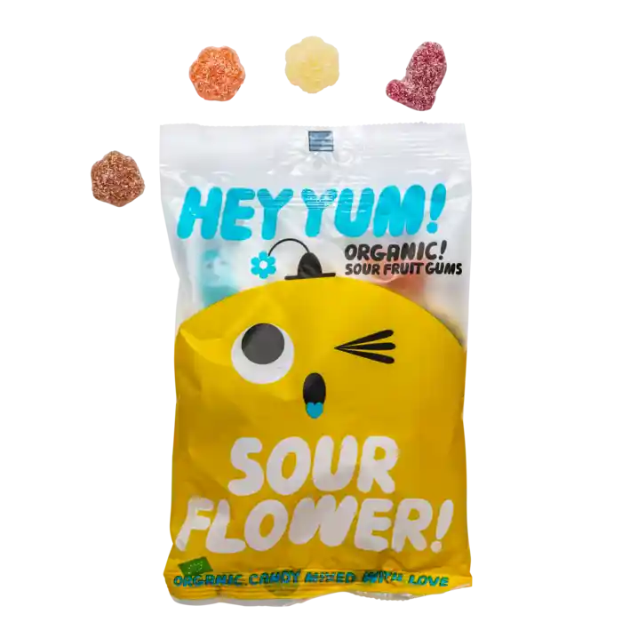Hey Yum! är ett nytt ekologiskt alternativ på godismarknaden, med rötter i Danmark. Deras vingummin är smaksatta med ren fruktsaft, sötade med honung och ekologiskt socker och är naturligt fria från artificiella smakämnen samt färg, sötningsmedel eller konserveringsmedel. För Hey Yum! handlar det om att skapa ett roligt och färgglatt godisuniversum i balans – bara för att något är ekologiskt och naturligt, behöver det inte vara tråkigt!
