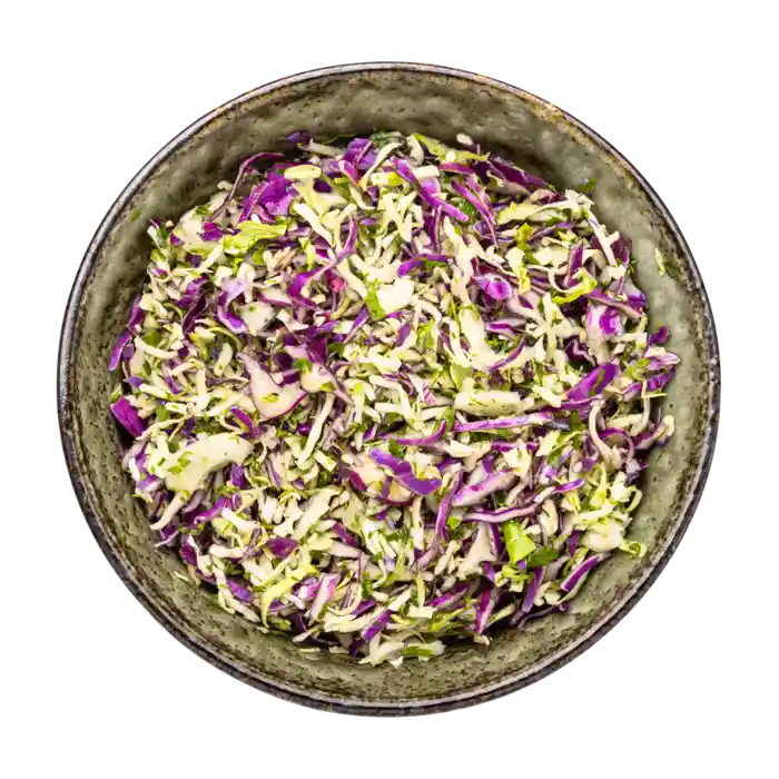 Sköljd och hackad kålmix, klar att använda i sallader eller som fyllning i t. ex. pitabröd eller tortillas.