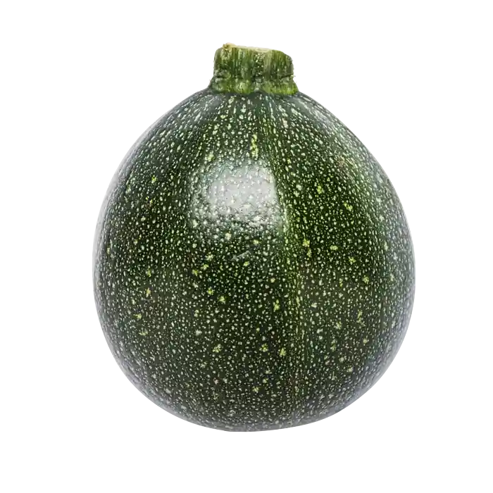 En zucchini som, till skillnad från den traditionellt avlånga versionen, är rund till formen. Smaken är fräsch, mild, söt och lite nötig.
