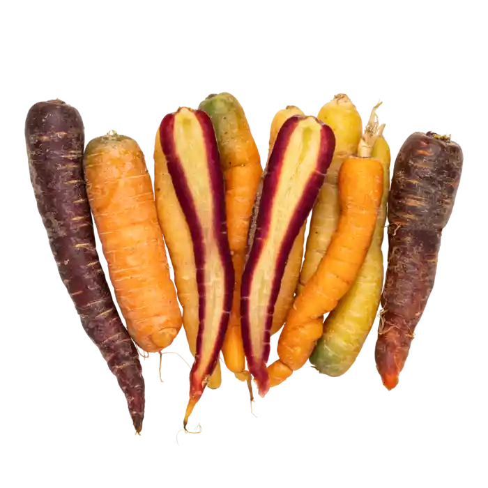 Även om vi idag mest ser orangea morötter så finns den härliga rotfrukten faktiskt i många olika färger. Här får du en mix från hela färgskalan.