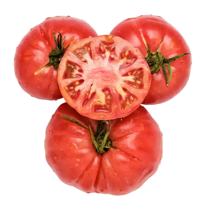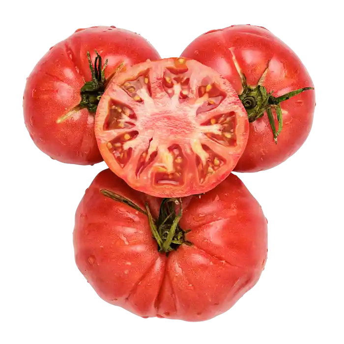 Dessa bifftomater från Andalusien har en vacker ljusrosa färg och ett saftigt, köttigt inre. De är fasta, aromatiska och fulla av smak.