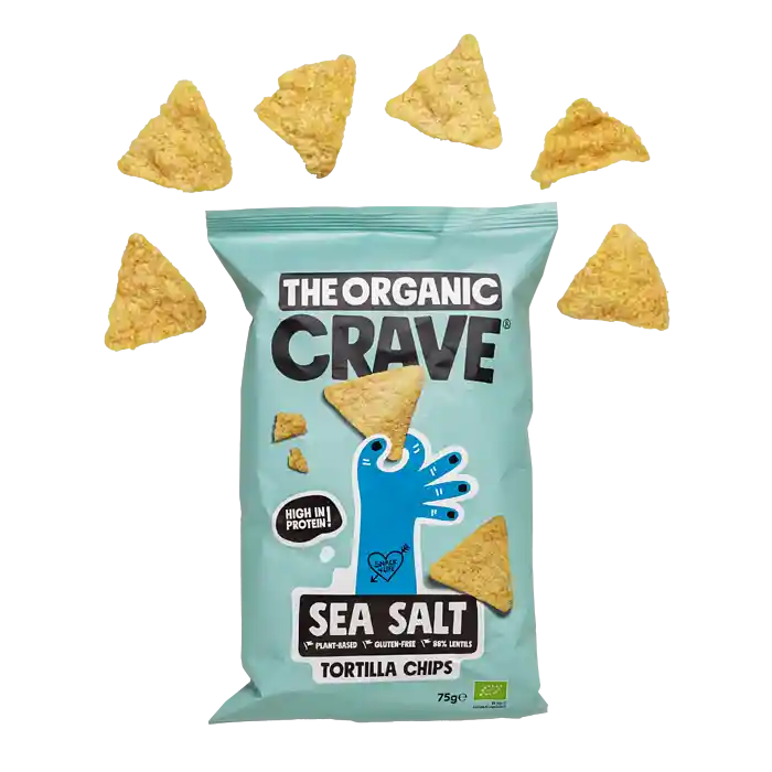 Ekologiska lins-tortillachips med havssalt från The Organic Crave, 75 g.