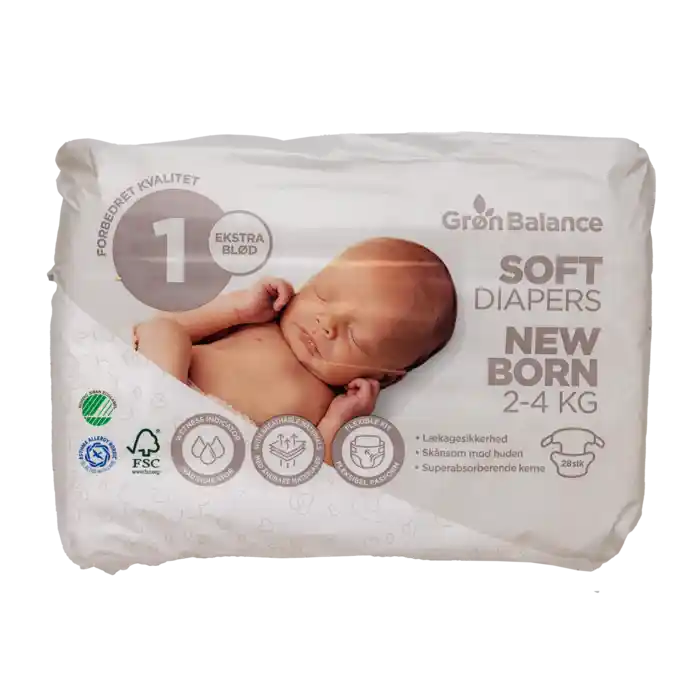 2-4 kg, 28 st. | Skonsamma blöjor med hög komfort från Grøn Balance
