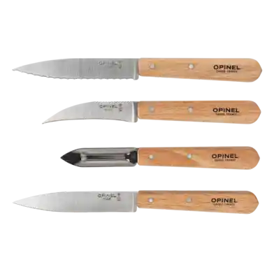 4 st. | 4 olika skalknivar från Opinel i rostfritt stål med handtag i bok
