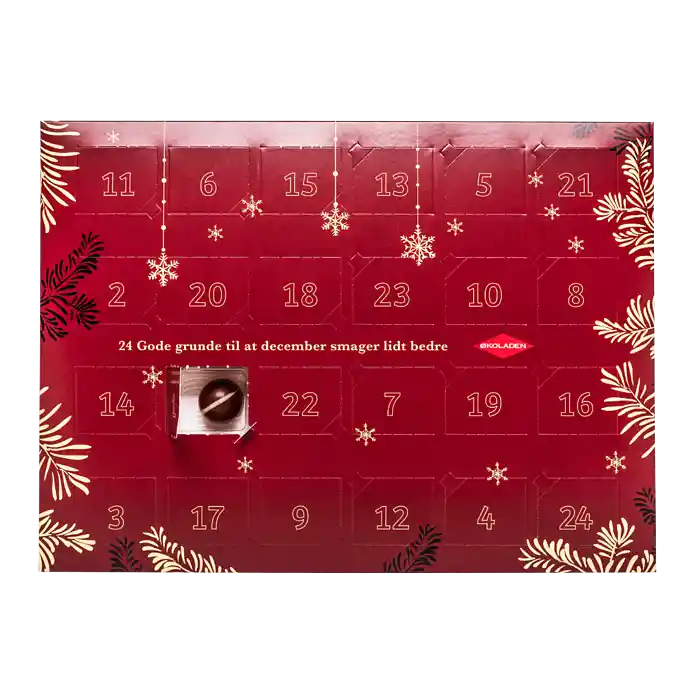 Ekologisk chokladjulkalender från Økoladen, 24 bitar choklad, totalt 240 g.