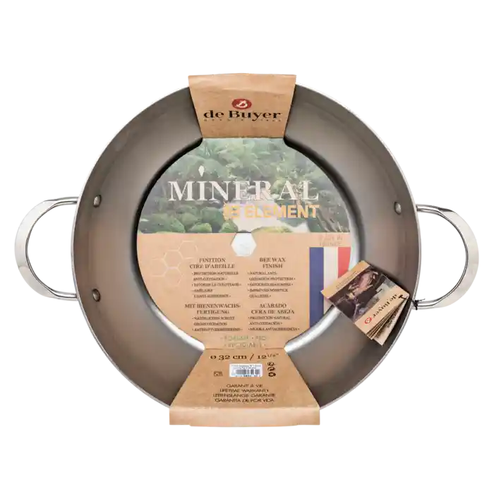 De Buyer Mineral B-sautepanna med två handtag i stål.