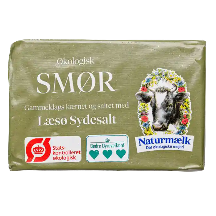 Ekologiskt smör med Læsø-sjudsalt från danska Naturmælk, 200 g.