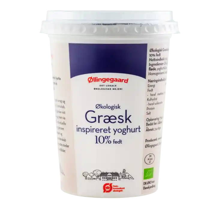 Grekisk inspirerad yoghurt 10%, från Øllingegaard, 500 g.