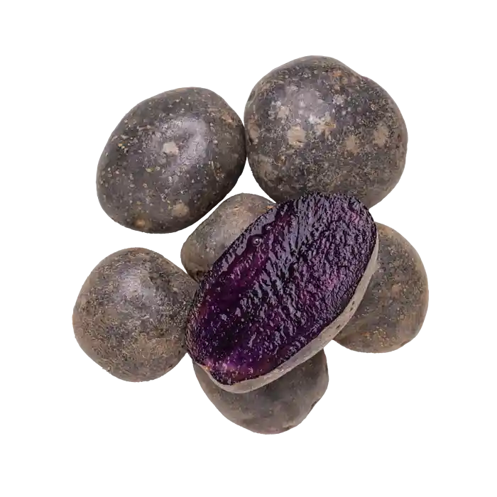 Potatisen behåller sin blå färg när den tillagas, så du kan överraska din familj med blå chips, blått potatismos eller blå potatissallad.