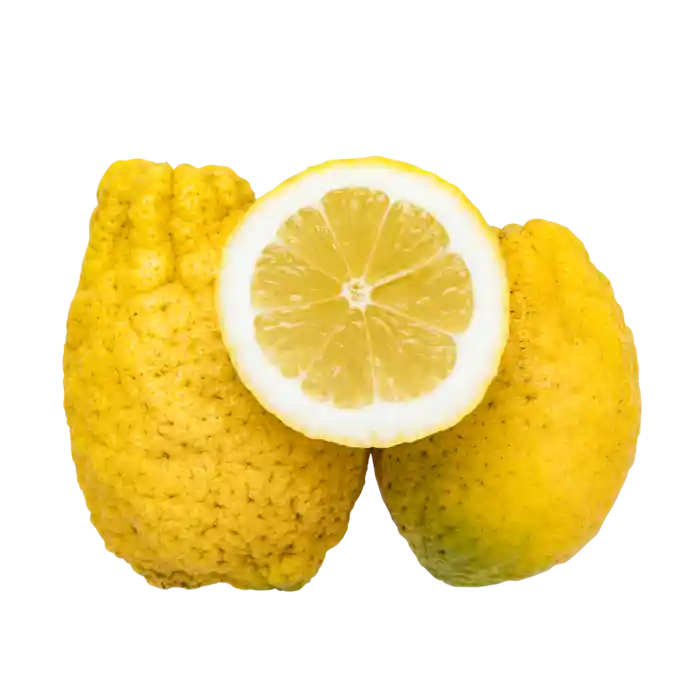 Cedratcitronen är vanligtvis betydligt större än en vanlig citron och känns igen på sitt knottriga och något mörkare skal, som är tjockt och utgör större delen av frukten.
