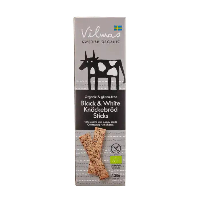 Krispiga, ekologiska och glutenfria knäckesticks bakade på havre, bovete och majs – toppade med sesam- och vallmofrön. Perfekta till ost, dipp eller som krispigt tillbehör till middagen.
