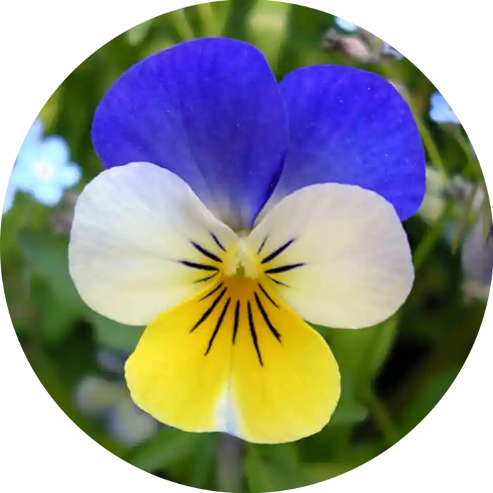 Ettårig, 10–30 cm hög. Vackra, förhållandevis små blommor med lila, gula och vita kronblad. En av de tidigaste blommorna att njuta av i trädgården, på balkongen och i salladen.