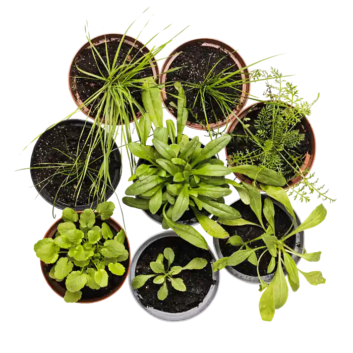 Lådan innehåller 8 krukor med 8 olika typer av inhemska blommor.