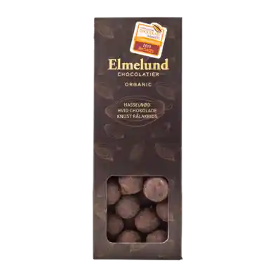 90 g | Dragerade hasselnötter med vit choklad och rålakrits från Økoladen
