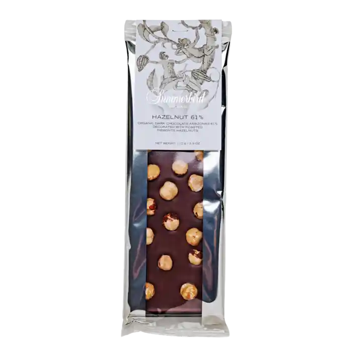 Ekologisk Hazelnut 61 %-chokladbar från Summerbird, 110 g.