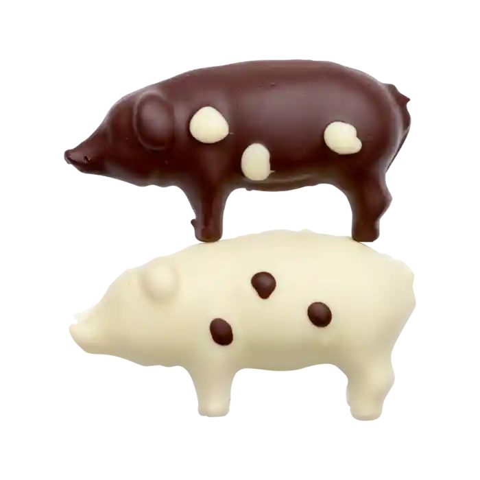 2 st. | Fina marsipangrisar med mörk och vit choklad