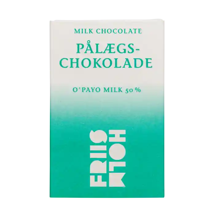 Ekologisk påläggschoklad med 50% O'Payo kakao från Friss-Holm Chocolate, 56 g totalt.