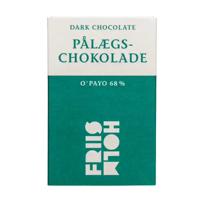 Mörk ekologisk påläggschoklad med 68% O'Payo kakao från Friss-Holm Choklad, 56 g totalt. Vegansk.