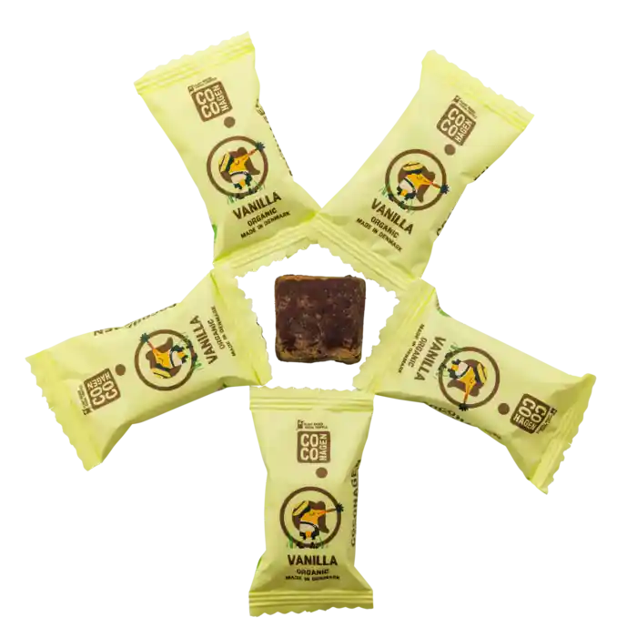 Cocohagen Vanilla är smaken av 100 % mörk kakao i kombination med mjuk och rund vanilj. Gjord med söta dadlar, mycket kakao, vanilj och en liten twist av rosa Himalayasalt.