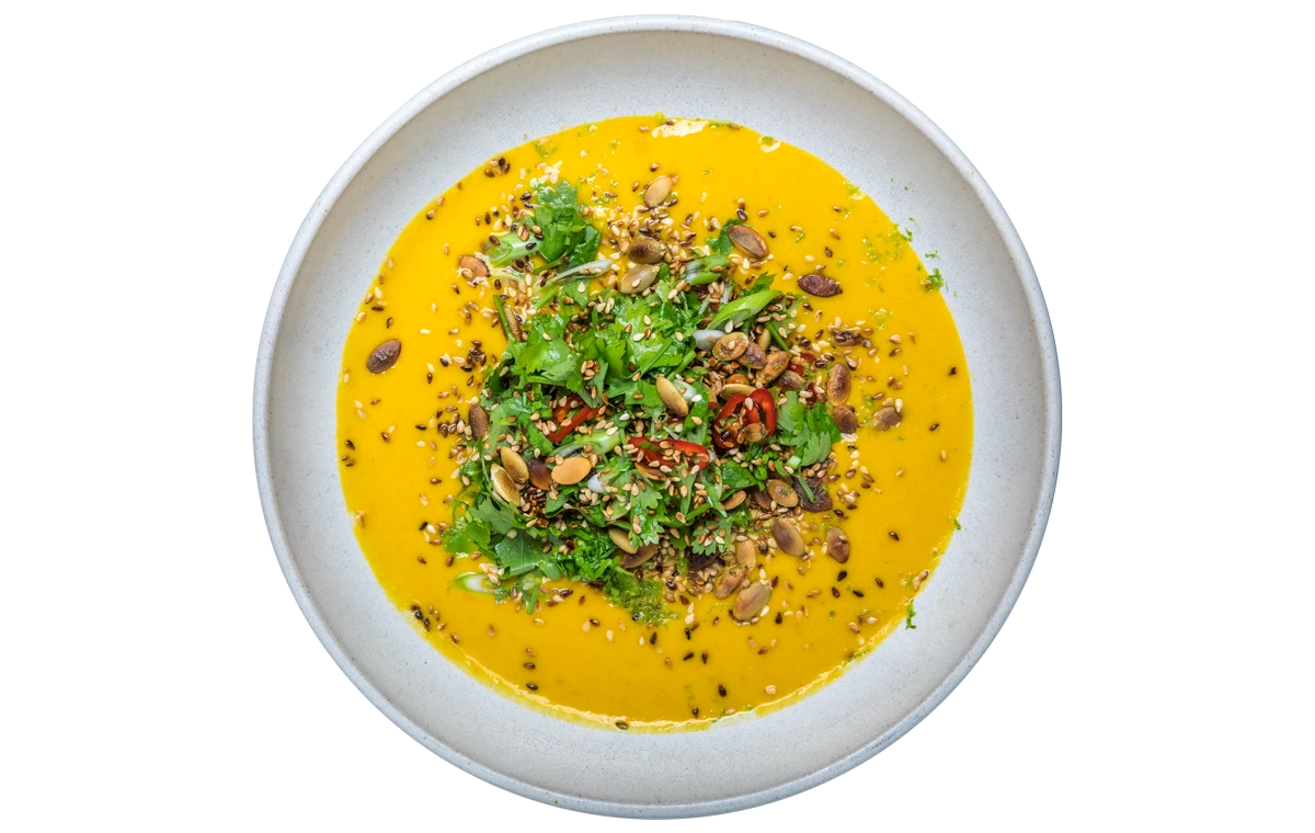 Följ receptet för en krämig asiatisk-inspirerad hokkaidosoppa