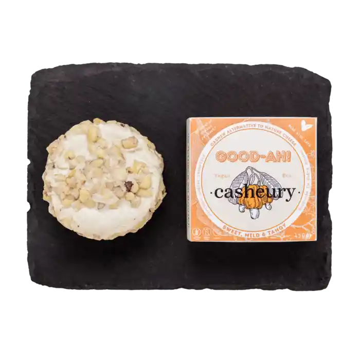 Casheury Good-Ah är vegansk och glutenfri. Den är gjord av cashewnötter, vilket ger den en naturligt krämig och len konsistens.