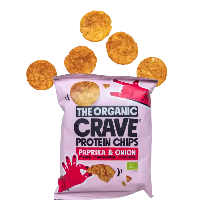 Ekologiska linschips med paprika och lök från The Organic Crave, 30 g. Veganska.