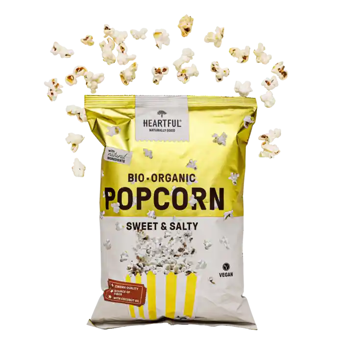 Ekologiska söta och salta popcorn från Heartful, 90 g.